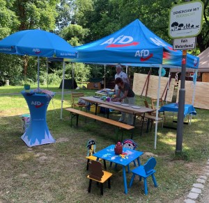 Noch etwas? Ja, der CDU-Landrat flanierte mit Gefolge am Samstag am AfD-Zelt vorbei ohne die Aktiven dort eines Blickes zu würdigen. Aber das ist eine ganz andere Geschichte. Und so sah unser Stand aus am frühen Sonntagmorgen :