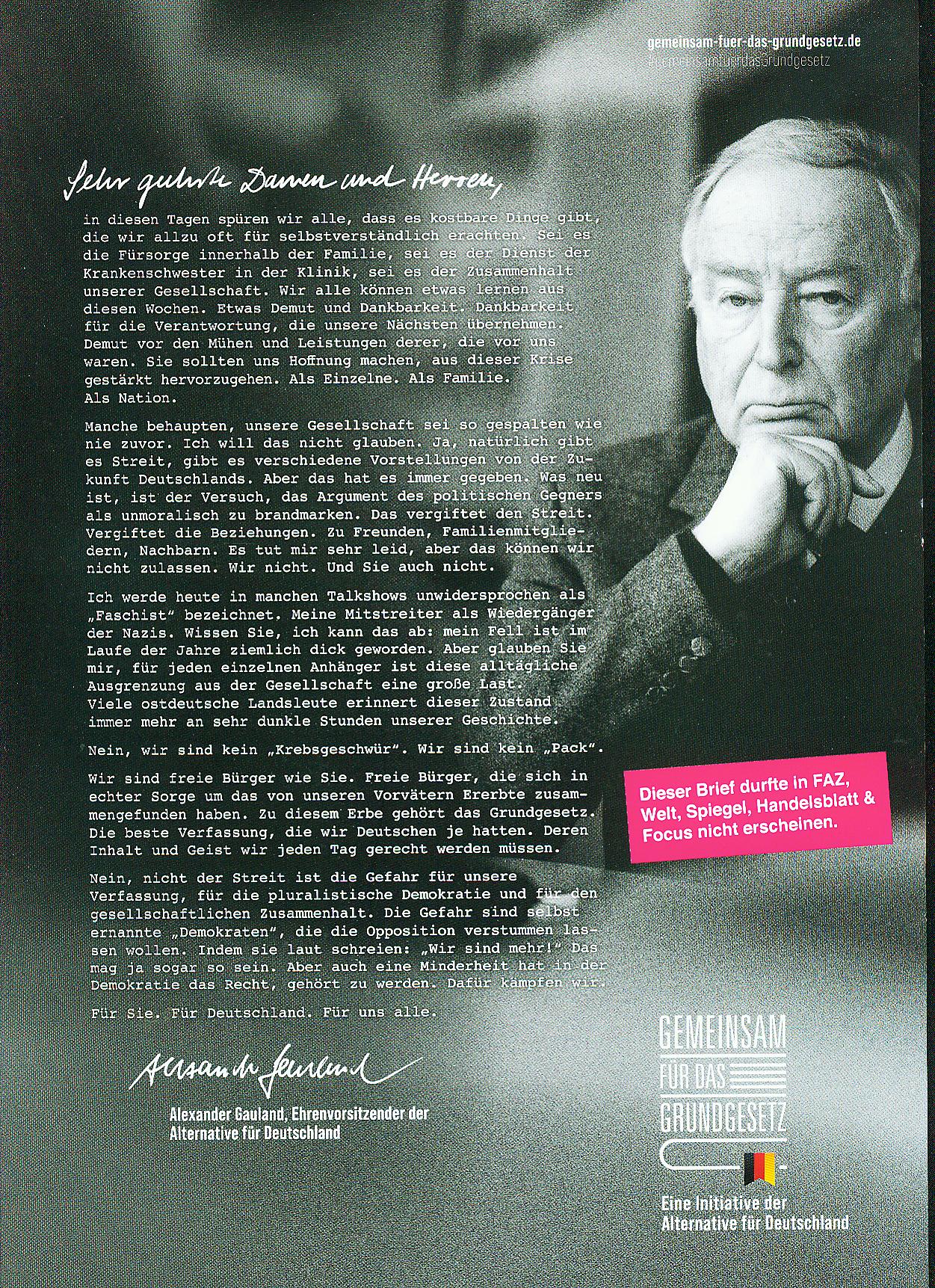 Es gibt seit zwei Tagen eine Anweisung der Funke-Mediengruppe, im Wahlkampf keine Annoncen der AfD anzunehmen!