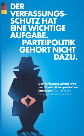 Man kann es nicht oft genug betonen: Die Bundesrepublik ist tatsächlich das einzige Land der westlichen Welt, das seinen Inlandsgeheimdienst auf die Opposition ansetzt. Kein gutes Zeichen. Denn derlei kennt man üblicherweise nur von totalitären Regimen. Es ist dringend notwendig, unsere freiheitliche Verfassung zu schützen. Sie ist bedroht ausgerechnet von denen, die sich unter falschem Deckmantel als „Verfassungsschutz“ tarnen.Flyer_VS_Flyeralarm_Wickel_8S